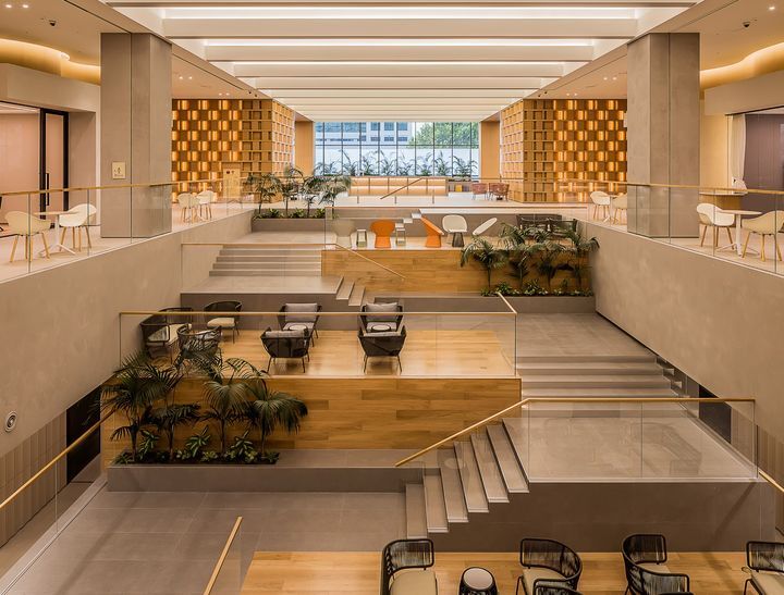 2층 '빛의 라이브러리'는 통창과 자연 목재의 질감을 살린 설계와, 사선 및 곡선을 활용한 공간 디자인으로 창의적인 소통과 협업을 이끌어내는 새로운 업무 공간이자 휴식의 공간으로 설계했다.