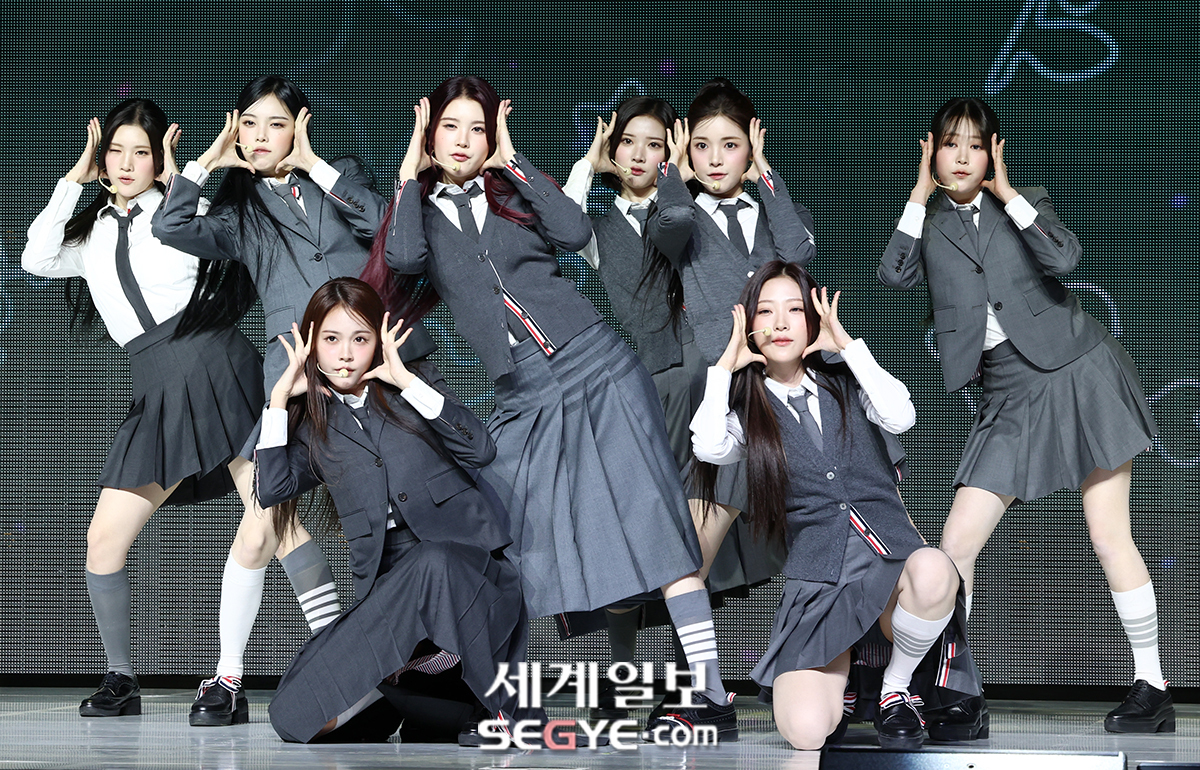 그룹 하츠투하츠가 20일 서울 용산구 한남동 블루스퀘어에서 열린 첫 미니앨범 ‘FOCUS’(포커스)의 쇼케이스에 참석해 열띤 공연을 펼치고 있다.