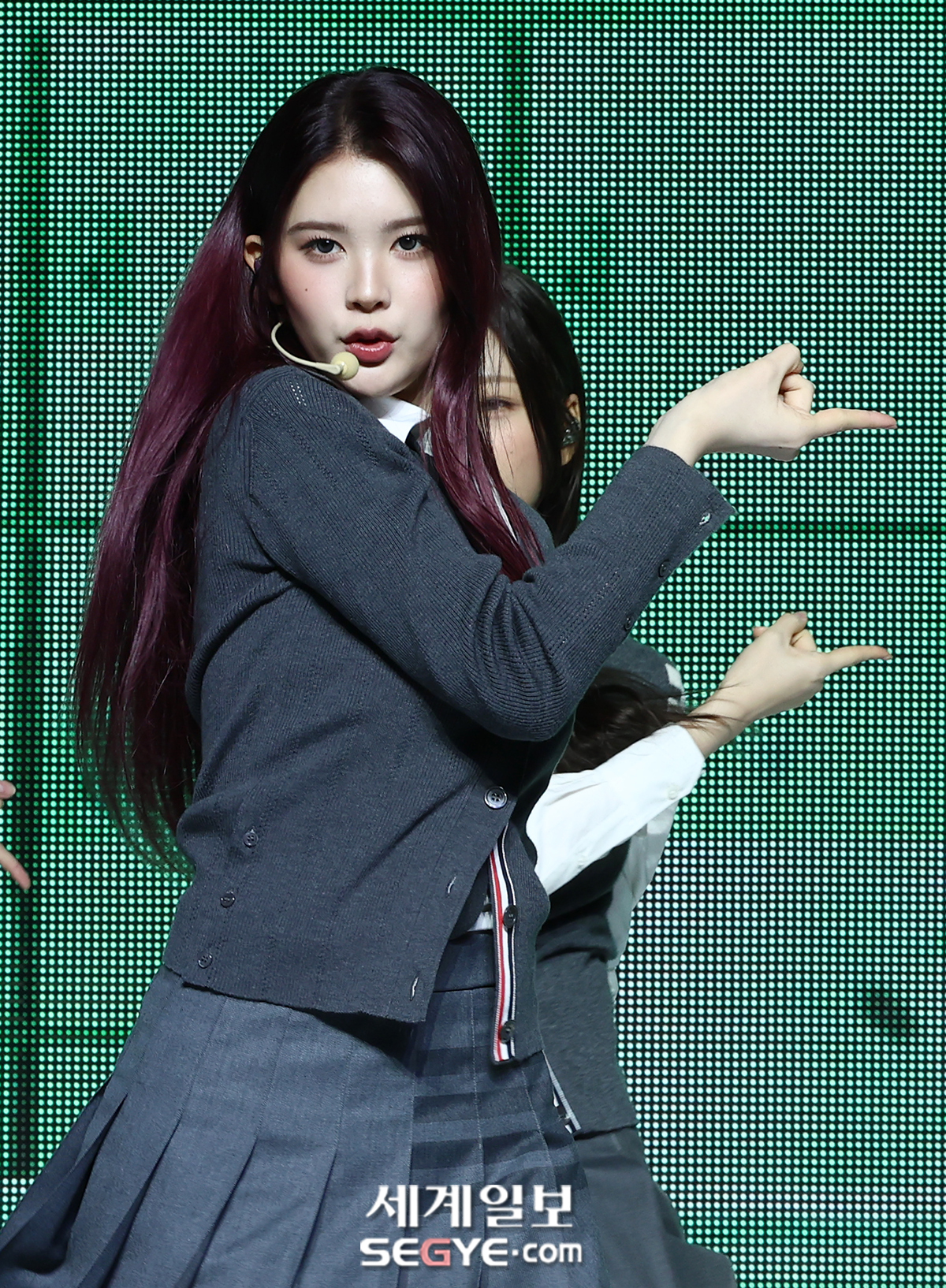 그룹 하츠투하츠가 20일 서울 용산구 한남동 블루스퀘어에서 열린 첫 미니앨범 ‘FOCUS’(포커스)의 쇼케이스에 참석해 열띤 공연을 펼치고 있다.