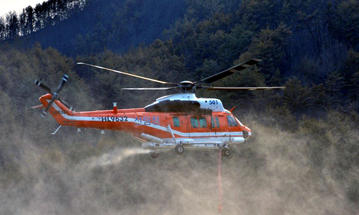 S-64헬기의 야간 기동이 불가능한 탓에 지난 4월 대구 북구 함지산에서 발생한 산불 당시에도 수리온 2대만 야간 산불진화에 투입됐다. 수리온의 담수량은 2000ℓ로 S-64헬기의 4분의 1 수준에 불과하다. 정 의원은 “산림청은 S-64헬기가 내년 봄철에는 야간에도 가동할 수 있도록 차질 없이 준비해야 한다”고 지적했다.