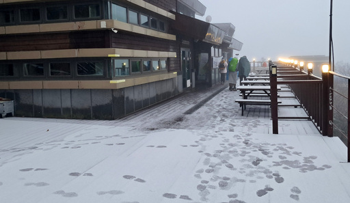 20일 오전 강원 인제군 설악산국립공원 소청대피소 일원이 이번 가을 첫눈으로 뒤덮인 가운데 등산객들이 눈을 밟으며 걷고 있다. 올해 첫눈은 지난해보다 하루 늦게 내렸는데 이날 새벽부터 쌓인 것으로 추정된다. 적설량은 중청대피소 기준 1㎝가량이다.