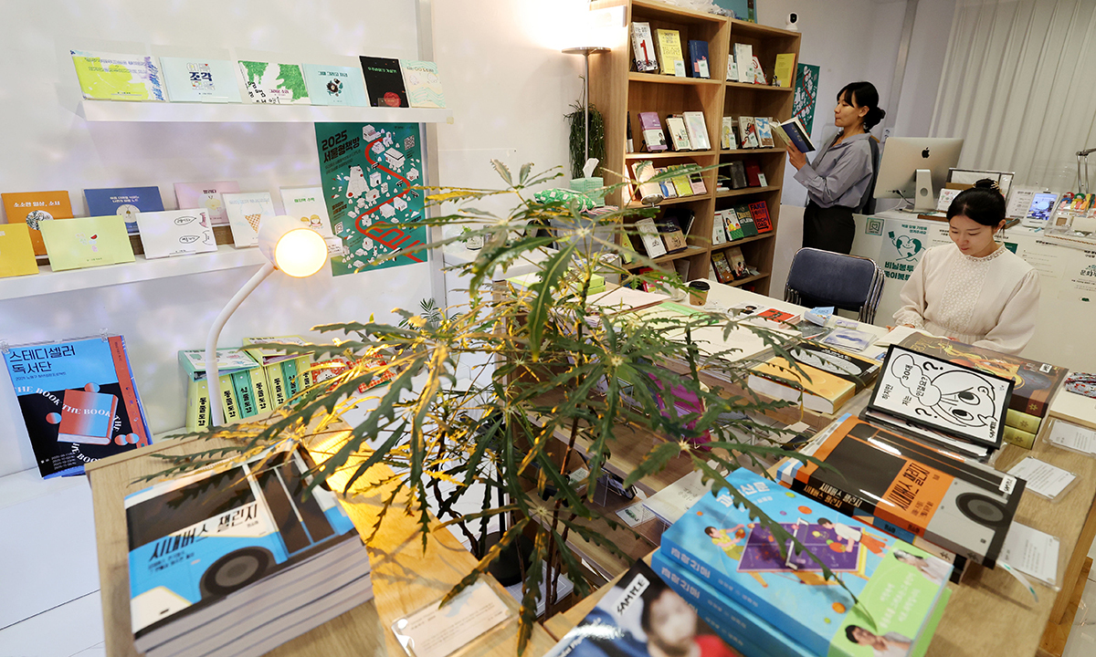 20일 서울 노원구 화랑로 석계역 앞 헌책방 ‘땡땡섬’을 찾은 시민들이 책을 고르고 있다. 노원청년가게 독립서점 ‘땡땡섬’은 2024년 6월에 개점했다. 노원청년가게는 창업을 꿈꾸는 청년들에게 점포 운영 기회를 제공하는 사업이다.