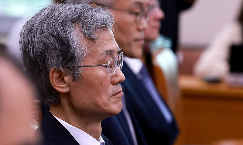 조희대 대법원장이 13일 국회에서 열린 법제사법위원회 국정감사에 출석해 여야 의원들의 설전을 지켜보다 눈을 감고 있다. 연합뉴스