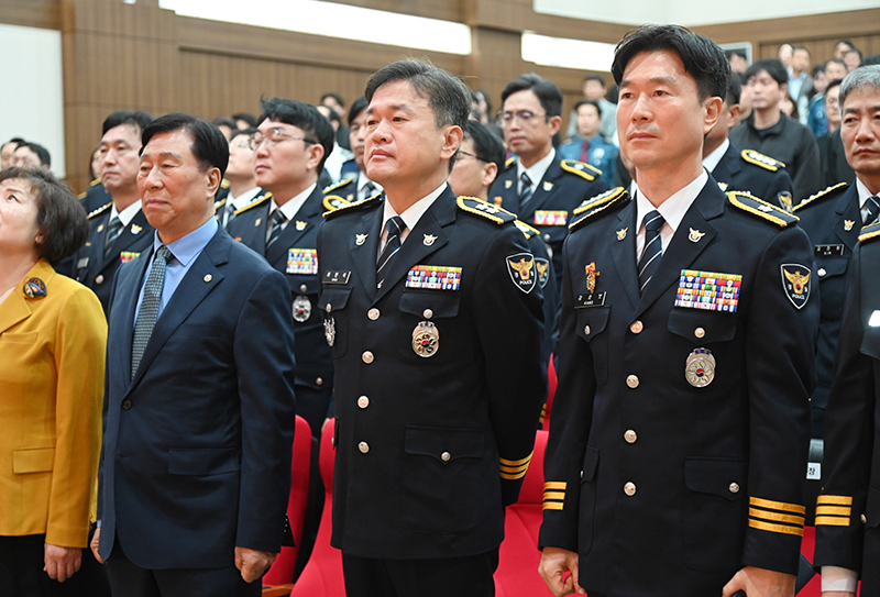 이날 기념식에서는 경찰행정 발전에 기여한 공로로 강원 자율방범연합회 최원석 사무처장에게 국무총리 표창을, 강원경찰장학회 이사장을 맡고 있는 G1 강원민방 조창진 대표에게 행정안전부 장관 표창을, 강원경찰청 집회시위자문위원회 위원장을 맡고 있는 서현의료재단 임두혁 대표에게 경찰청장 감사장을 수여했다.
