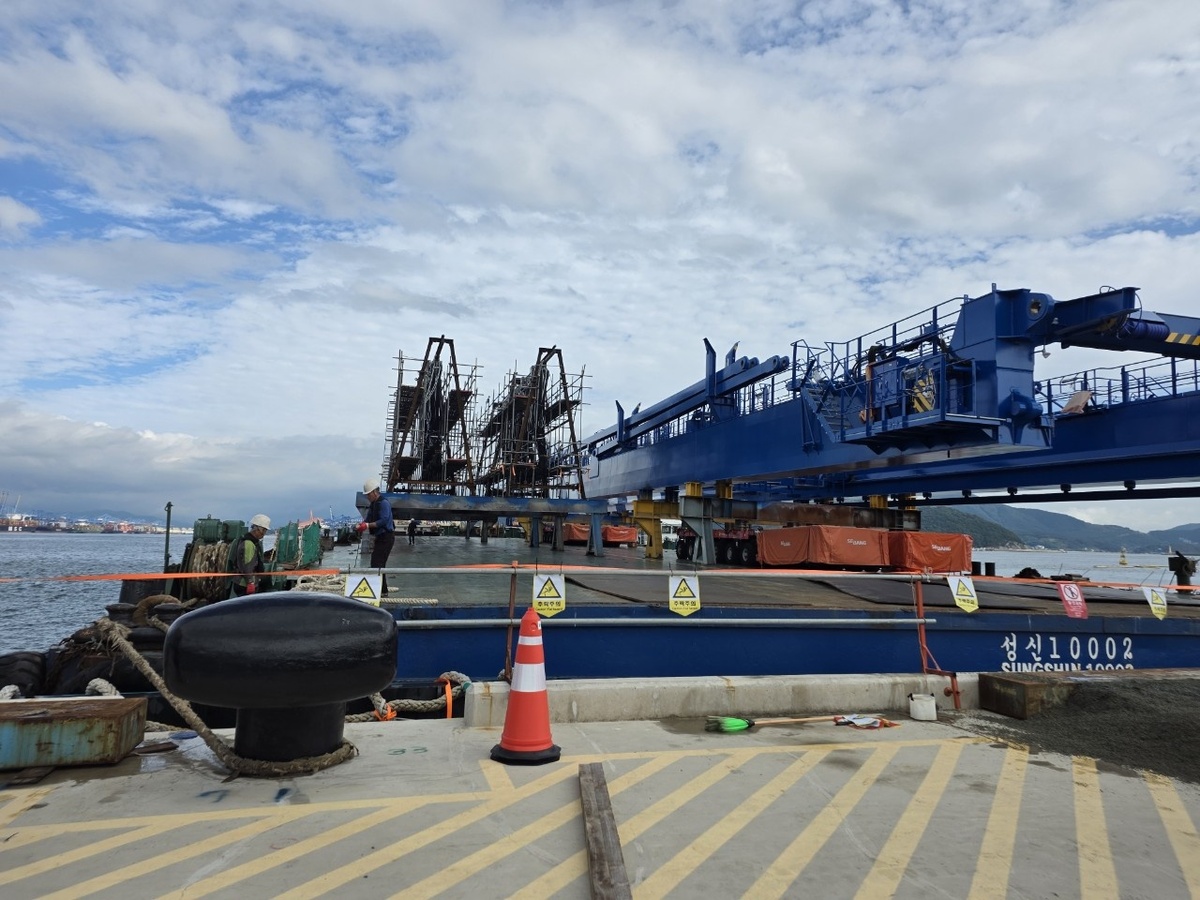 장비 운송은 컨테이너크레인(C/C)) 1대를 상·하·하역부 3개 부분으로 나눠 바지선으로 이송한다. 지난 15일 1항차 하역부 운송을 시작으로, 내년 6월까지 6대의 크레인을 총 18항차에 나눠 운송하며, 1항차당 약 9시간이 소요된다.