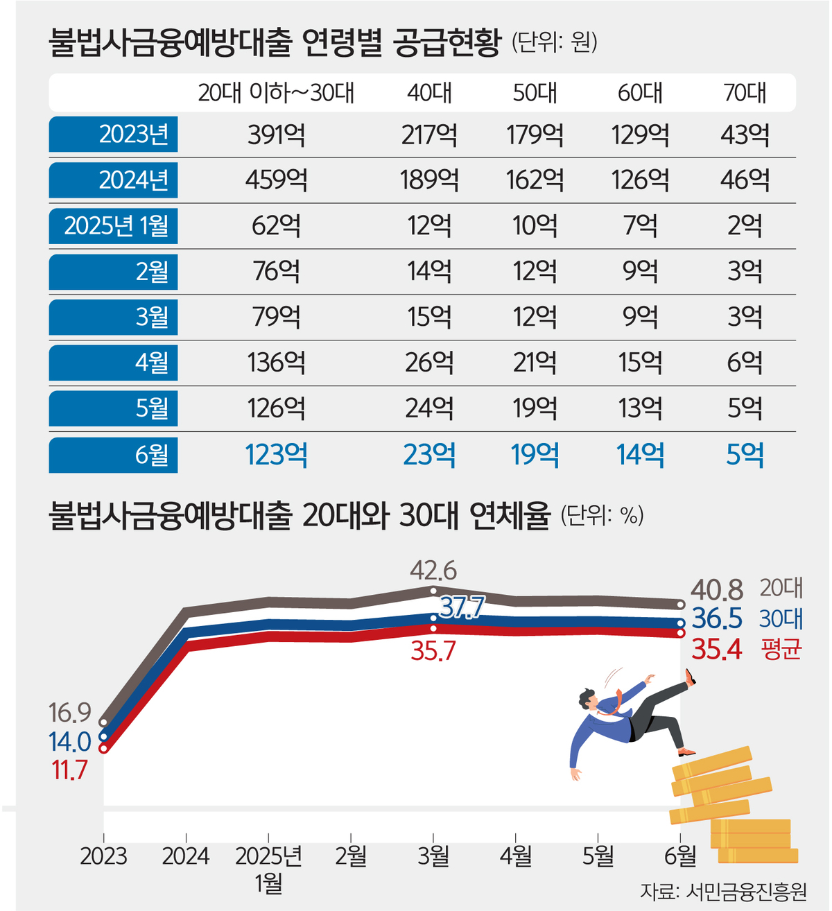 저신용 취약계층에게 최대 100만원을 빌려주는 ‘불법사금융예방대출(불사예대)’ 누적 대출액의 절반가량을 청년이 받은 것으로 나타났다. 연령대별 연체율도 청년층이 가장 높다. 고용 불황이 이어지며 구직을 포기하거나 실패한 청년들이 많아진 영향이란 지적이다.