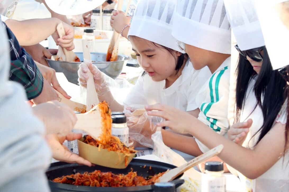 2024 전주비빔밥축제어서 어린이들이 비빔밥 비비고 있다. 전주시 제공