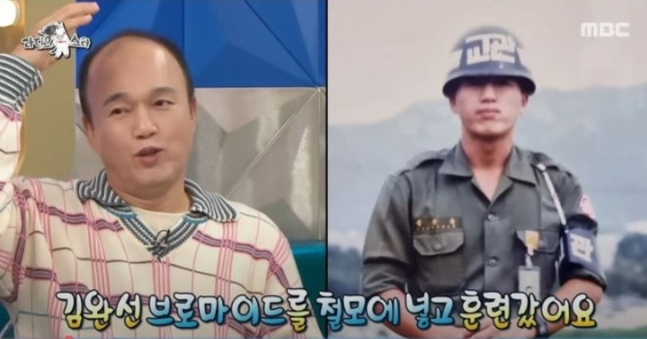 그는 "김완선 등장은 지금 제니 느낌이었다. 김완선 브로마이드를 철모에 넣고 훈련을 갔었다"고 했다.