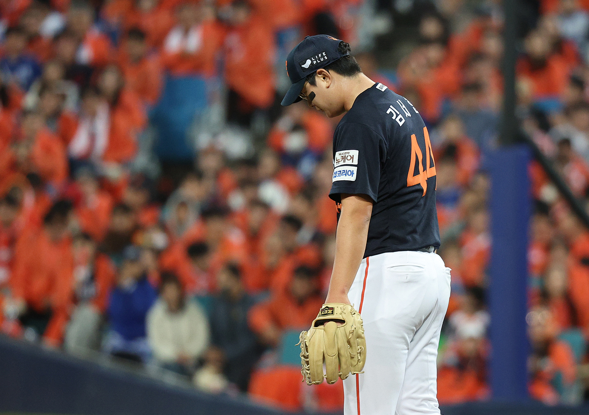 지난 18일 플레이오프 1차전에 9-6으로 앞선 9회 세이브를 위해 마운드에 올랐지만, 선두타자 이재현에게 홈런을 맞은 뒤 김태훈과 이성규에게 안타를 맞고 한 점을 더 내줬다. 9-8까지 쫓기자 급해진 김경문 감독은 김서현을 내리고 김범수를 올려 간신히 승리를 지켜냈다.