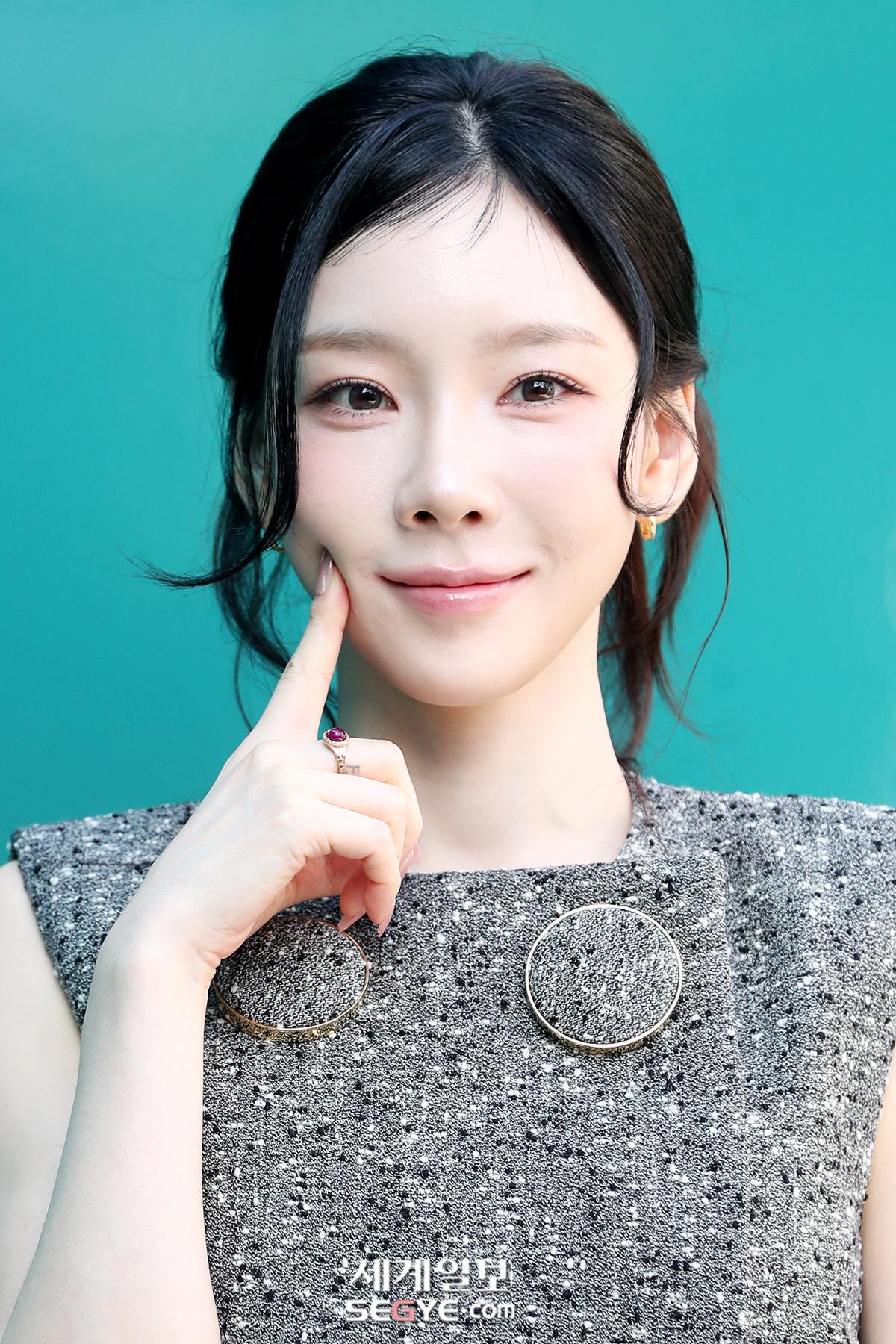 가수 태연이 23일 서울 성동구 성수동에서 열린 뷰티 브랜드 포토월 행사에 참석해 포즈를 취하고 있다.