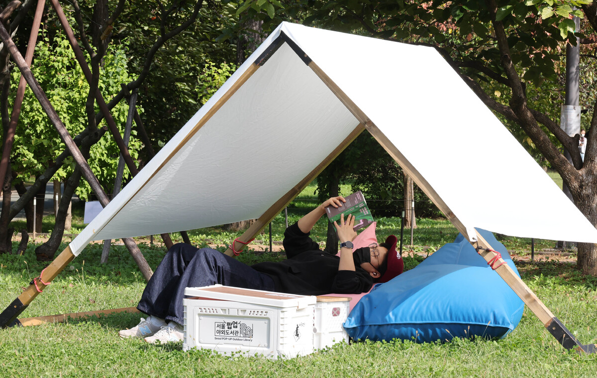 송파구는 오는 27일까지 '디지털 디톡스 라이브러리' 주제로 야외도서관을 준비했다. 디지털 기기를 잠시 내려놓고 자연에서 독서하며 사색하자는 취지다. 16~18일 위례호수공원(음악분수대 앞)을 시작으로 23~25일 아시아공원(송파문화원 앞), 26~27일 풍납백제문화공원(운동시설 옆 잔디광장)에서 펼쳐진다.