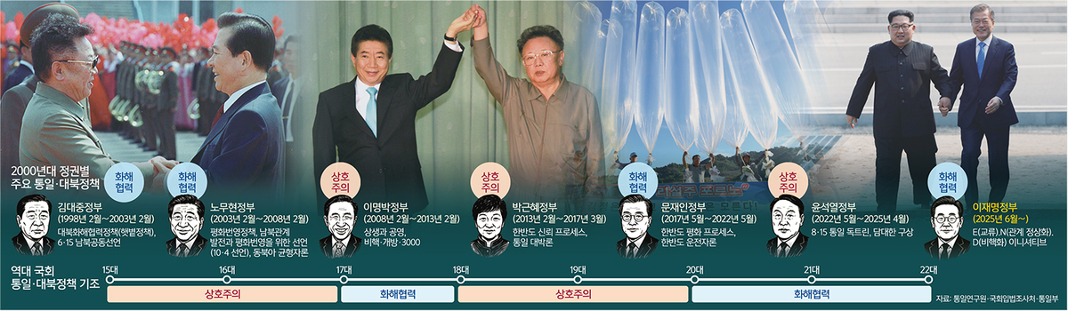 박상철 경기대 정치전문대학원 명예교수는 “(대북 정책이) 국제 정세에 따라 유연하게 바뀐 것이 아니라 정권이 바뀌면서 엇박자로 바뀌어버린 경우가 많다”고 지적했다.