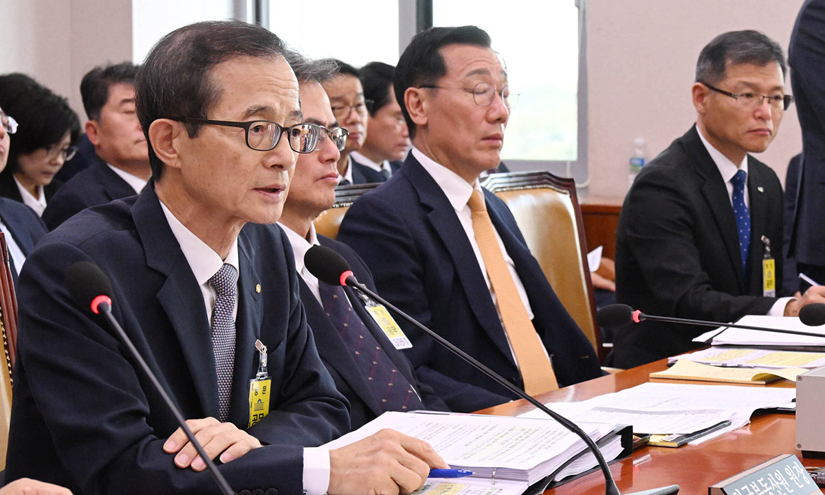손태락 한국부동산원 원장(앞줄 왼쪽)이 23일 서울 여의도 국회에서 열린 국토교통위원회의 한국부동산원 등에 대한 국정감사에서 답변하고 있다.