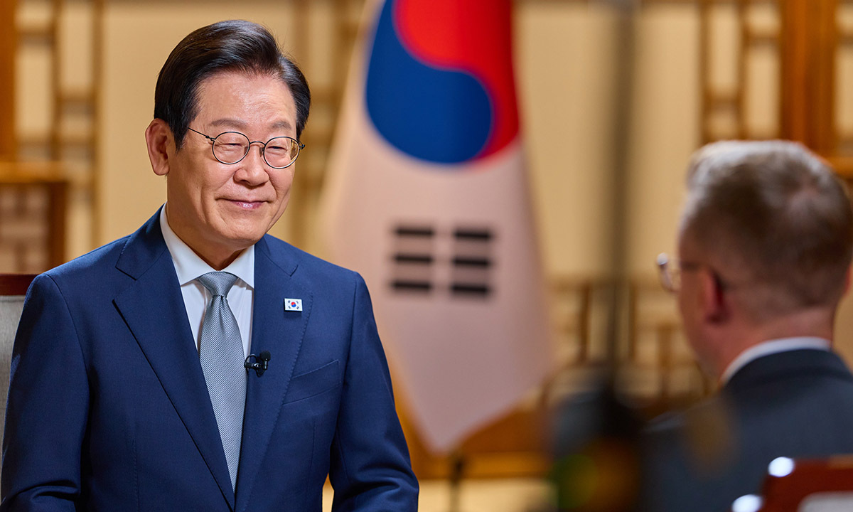 이재명 대통령이 지난 21일 서울 용산 대통령실에서 CNN방송과 인터뷰를 하고 있다. 이 대통령은 인터뷰에서 “이번 아시아태평양경제협력체(APEC·에이펙) 정상회의를 계기로 혹여라도 북·미가 전격적으로 만날 수 있다면 전적으로 환영하고 적극적으로 지원할 생각”이라며 “미국과 북한의 지도자가 갑자기 만난다면 좋은 일”이라고 밝혔다.