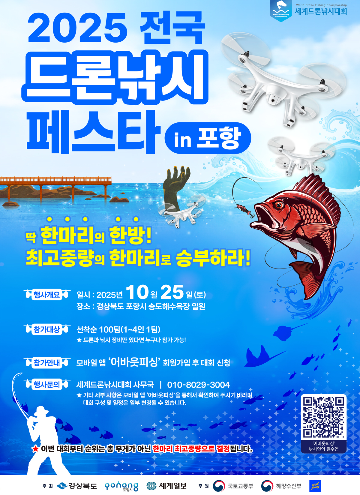 ‘2025 전국드론낚시페스타 in 포항’이 오는 25일 송도해수욕장 일원에서 화려한 개막식을 갖는다.