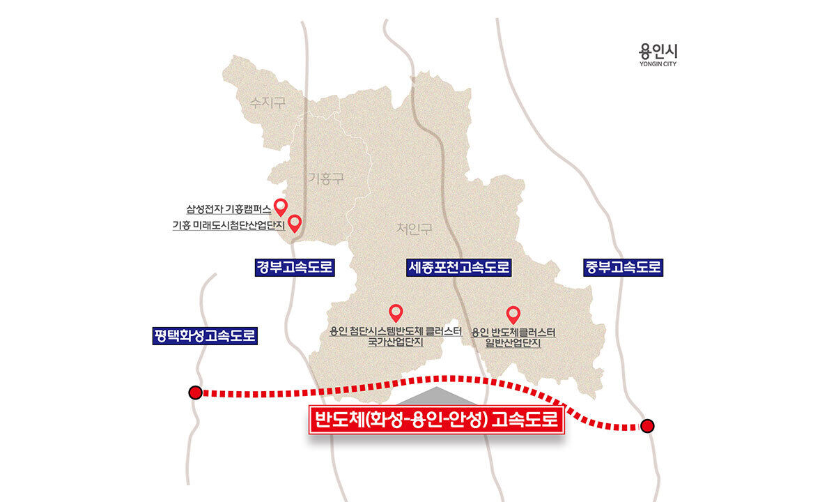 앞서 이 시장은 지난 지방선거 당시 반도체 고속도로 건설을 약속한 바 있다. 시장 취임 이후에는 국토부에 수차례 사업의 필요성을 설명하고 도움을 요청했다. 올해 4월에는 국토부 장관에게 반도체 고속도로를 비롯해 ‘용인~충주 민자고속도로’, ‘제2영동연결(의왕~용인~광주) 민자고속도로’ 등의 신속한 추진을 요청하는 서한을 보냈다.