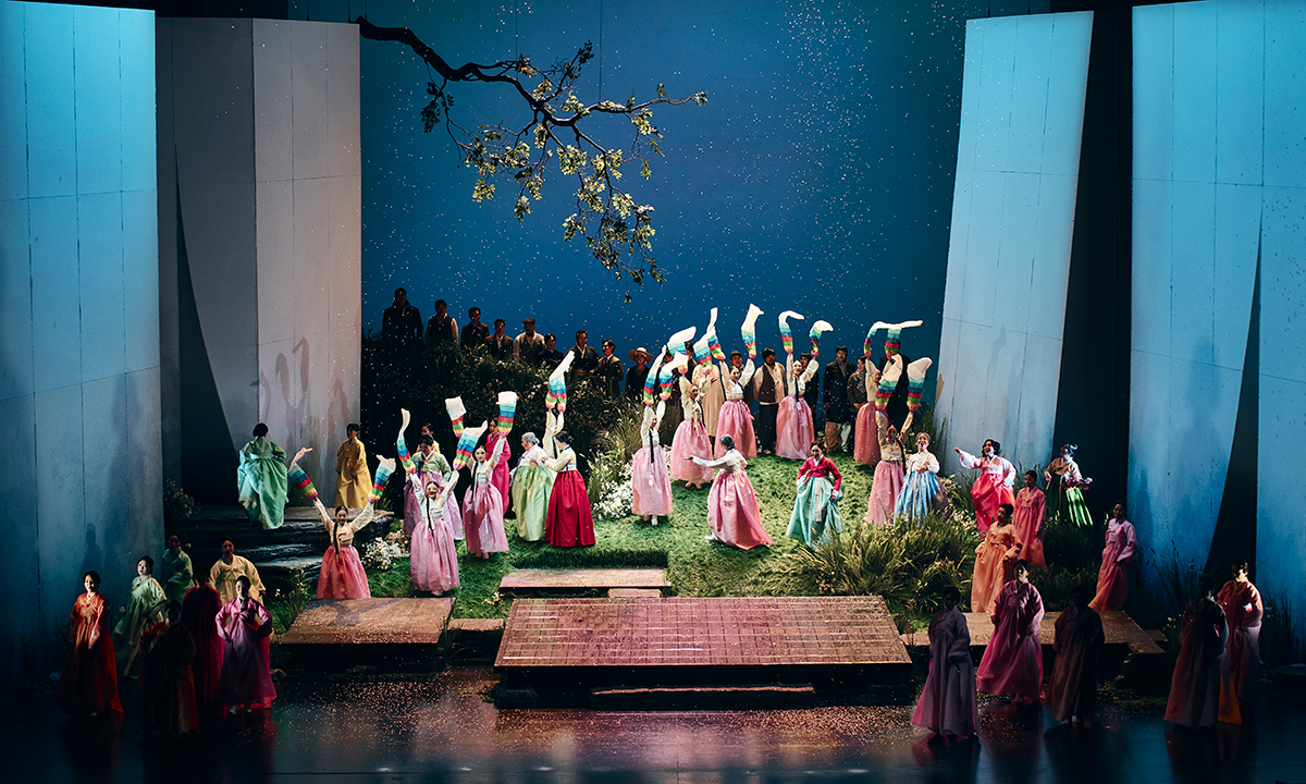 가장 인상적인 4막은 우리말 아리아의 향연이다. 옥중에 있는 남편을 기다리는 영주댁(김수정)의 ‘돌아와’를 비롯해 여인들 각자의 사연이 절절한 노래로 쌓이며 피날레로 향한다. 다만 화전놀이 합창과 김씨댁과 고모의 대화, 그리고 다시 봉아의 시낭독으로 이어지는 마무리는 다소 늘어진다. 1막 내내 무대 전면에 걸어둔 삼베 느낌의 막도 객석에는 답답함을 준다.
