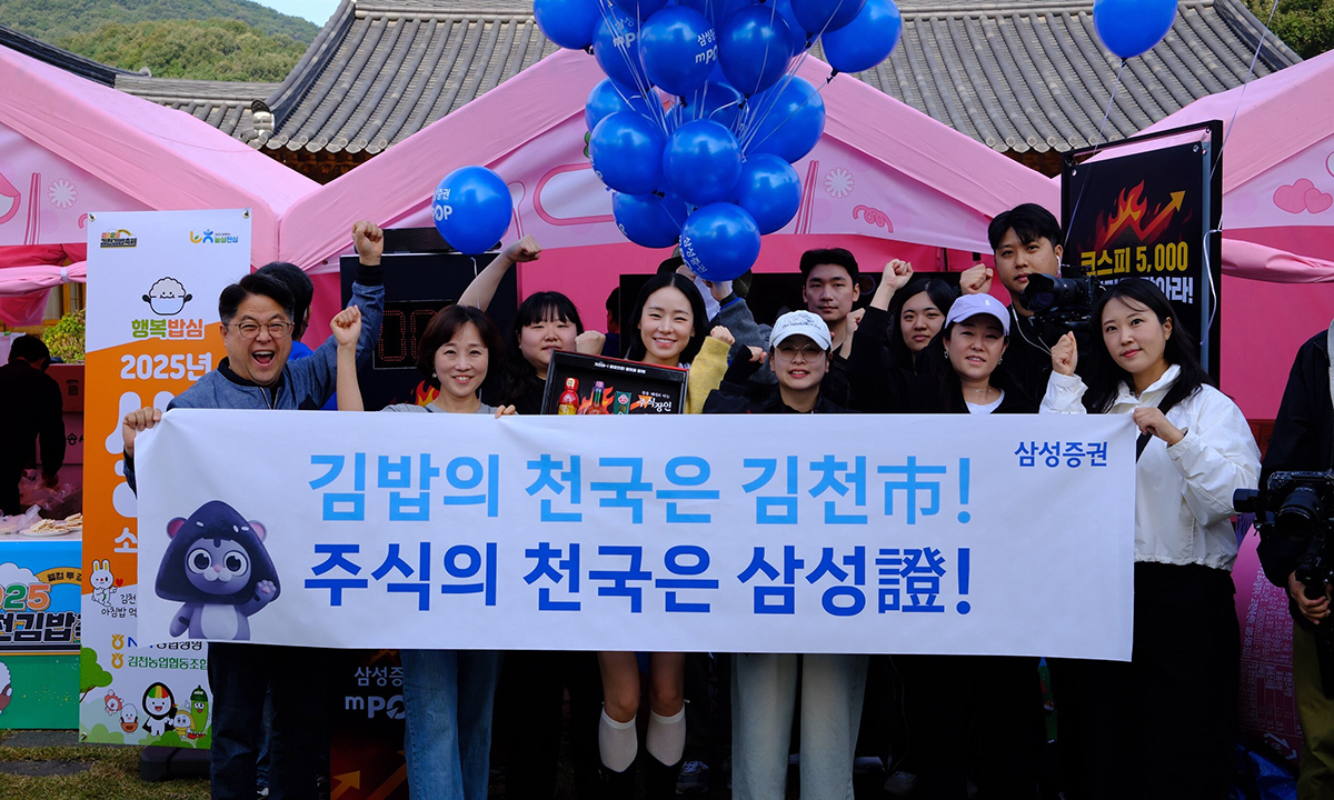삼성증권은 지난 25~26일 경북 김천에서 개최된 ‘2025 김천김밥축제’에서 ‘글로벌 주식 불장(상승장) 기원 맵소스(매운소스)’ 이색마케팅을 펼쳤다.