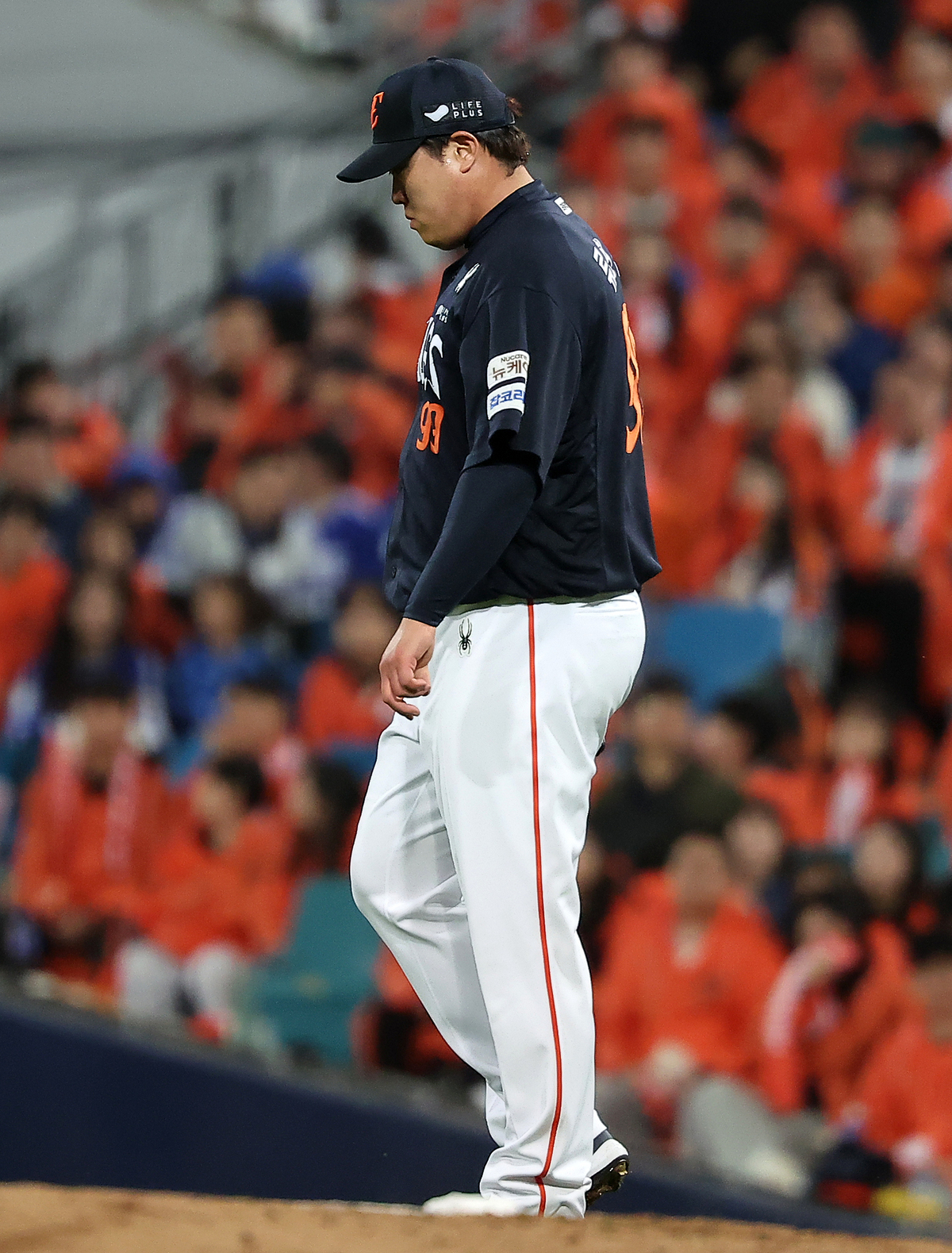 이날 한화 선발은 플레이오프 MVP 문동주. 삼성과의 플레이오프에서 불펜으로 나서며 1,3차전 2경기에서 6이닝 10탈삼진 무실점의 ‘언터쳐블’을 자랑했으나 이날은 4.1이닝 4피안타 3볼넷 3탈삼진 4실점(3자책)에 그치며 패전투수가 됐다. 불펜으로 나섰을 때의 강력함은 이날 찾아볼 수 없었던 문동주였다. 김 감독은 “문동주가 경기 초반에 몸이 덜 풀린 것으로 보였다”며 “(부진한내용에) 별다른 이유는 없다”고 전했다.