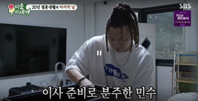 이날 이사 업체가 윤민수와 전처 집으로 왔다. 공용 가구는 스티커로 이미 나눠놨고, 이사업체 직원들은 스티커로 표시된 것만 가져갔다.