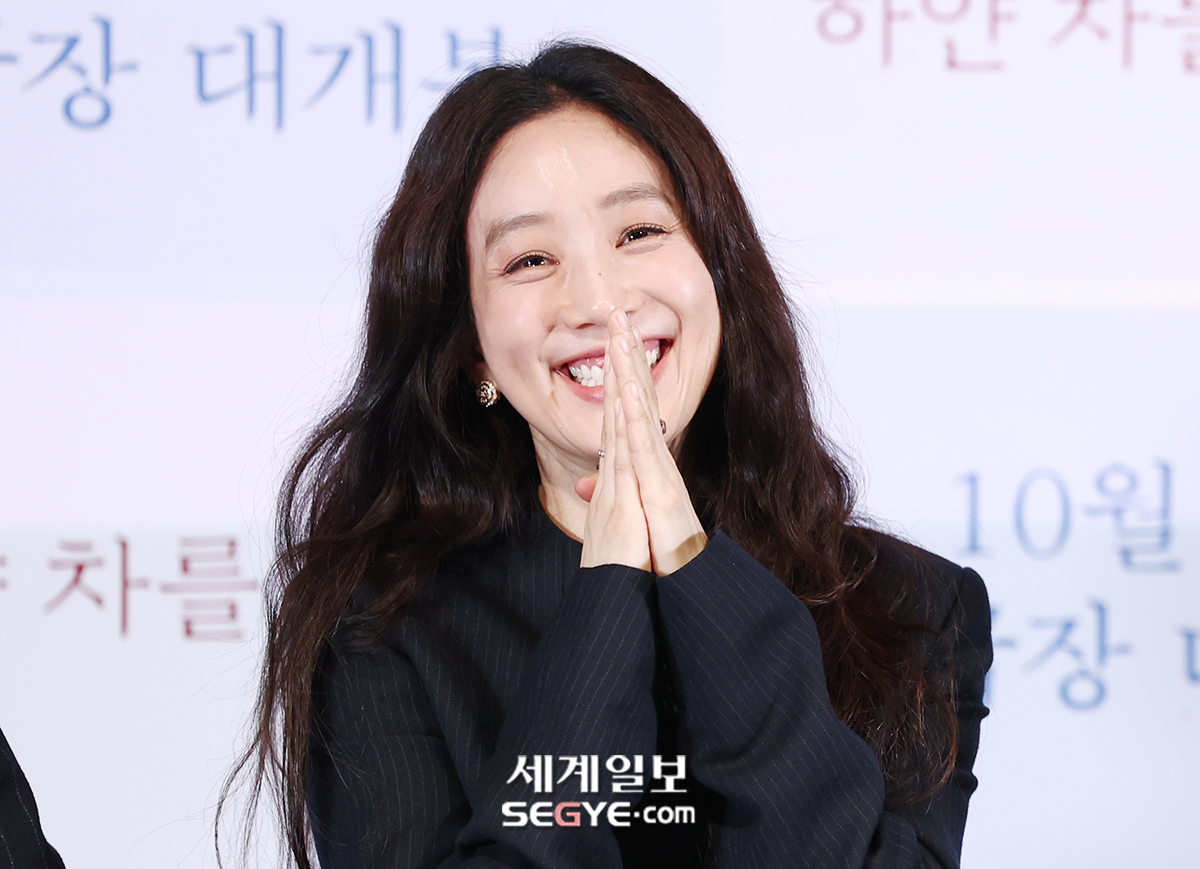배우 정려원이 27일 서울 용산 CGV에서 열린 영화 ’하얀 차를 탄 여자’의 언론시사회에 참석해 미소를 짓고 있다.