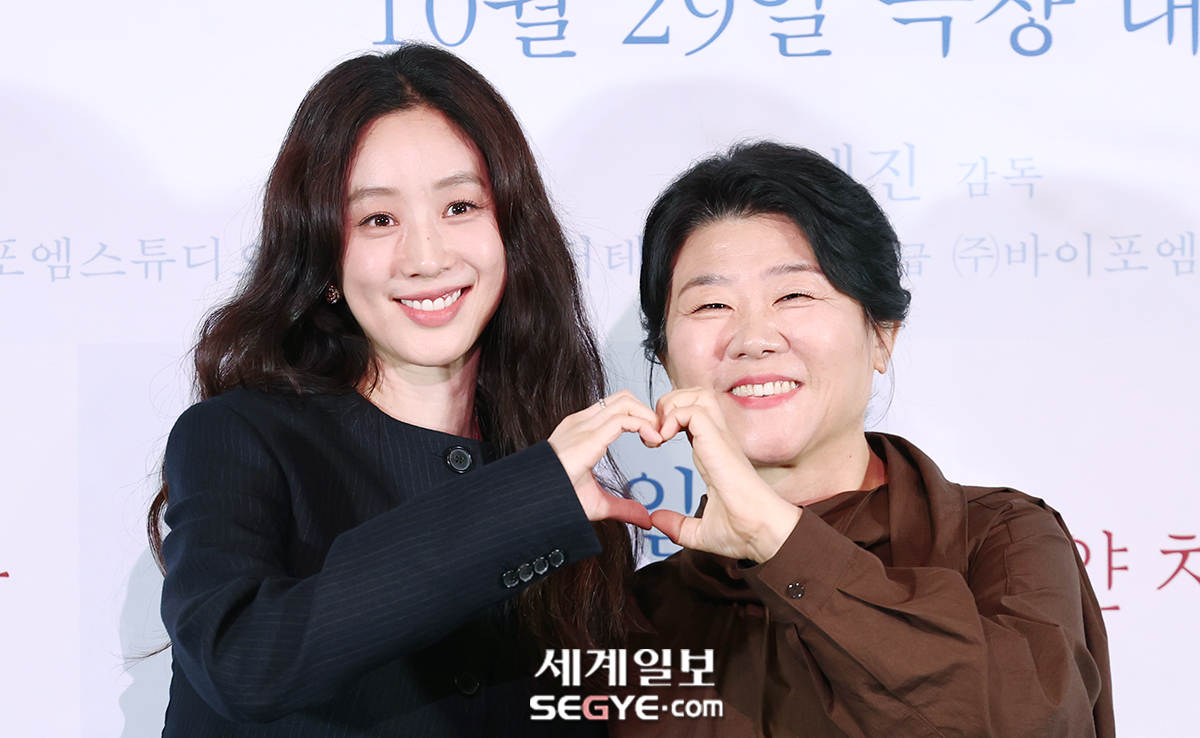 배우 정려원, 이정은이 27일 서울 용산 CGV에서 열린 영화 ’하얀 차를 탄 여자’의 언론시사회에 참석해 포즈를 취하고 있다.