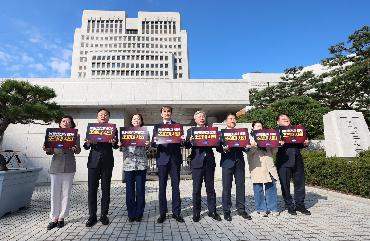 조 비대위원장은 “만약 이 요구가 외면된다면 조희대 대법원장의 탄핵을 포함한 모든 법적·정치적 수단을 강력히 추진하겠다”며 “조희대는 법의 옥좌에서 내려와야 한다. 조희대는 법의 심판대 앞에 서야 한다. 조희대의 대법원을 국민의 대법원으로 바로 세우겠다”고 덧붙였다.