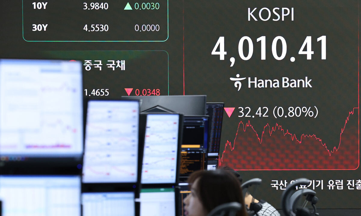 역사적 4000 고지에 오른 코스피가 28일 외국인의 ‘팔자’ 행렬에 랠리를 멈추고 숨고르기에 들어갔다. 정부는 코스피 불장이 거품이 아닌 ‘코리아 디스카운트’(한국 증시 저평가)가 해소되는 과정이라고 해석했다.
