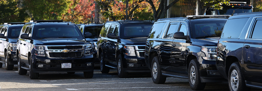 28일 경북 경주시 한 호텔 앞에 미국 정부 소속 번호판이 부착된 특수 차량들이 줄지어 주차돼 있다. 일부 차량에선 미 경호처 소속으로 보이는 인력들이 경호를 서고 있는 모습이 목격됐다.