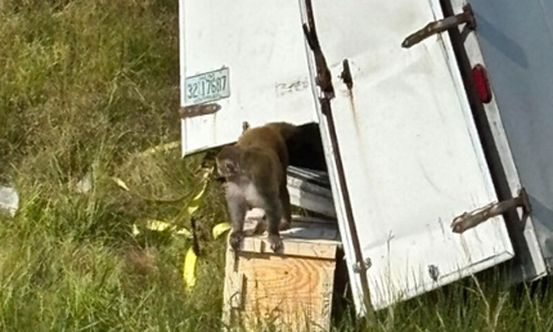 이 트럭은 루이지애나주 뉴올리언스 툴레인대학교 실험실 소속 원숭이들을 플로리다주의 다른 연구기관으로 이동 중이었다.