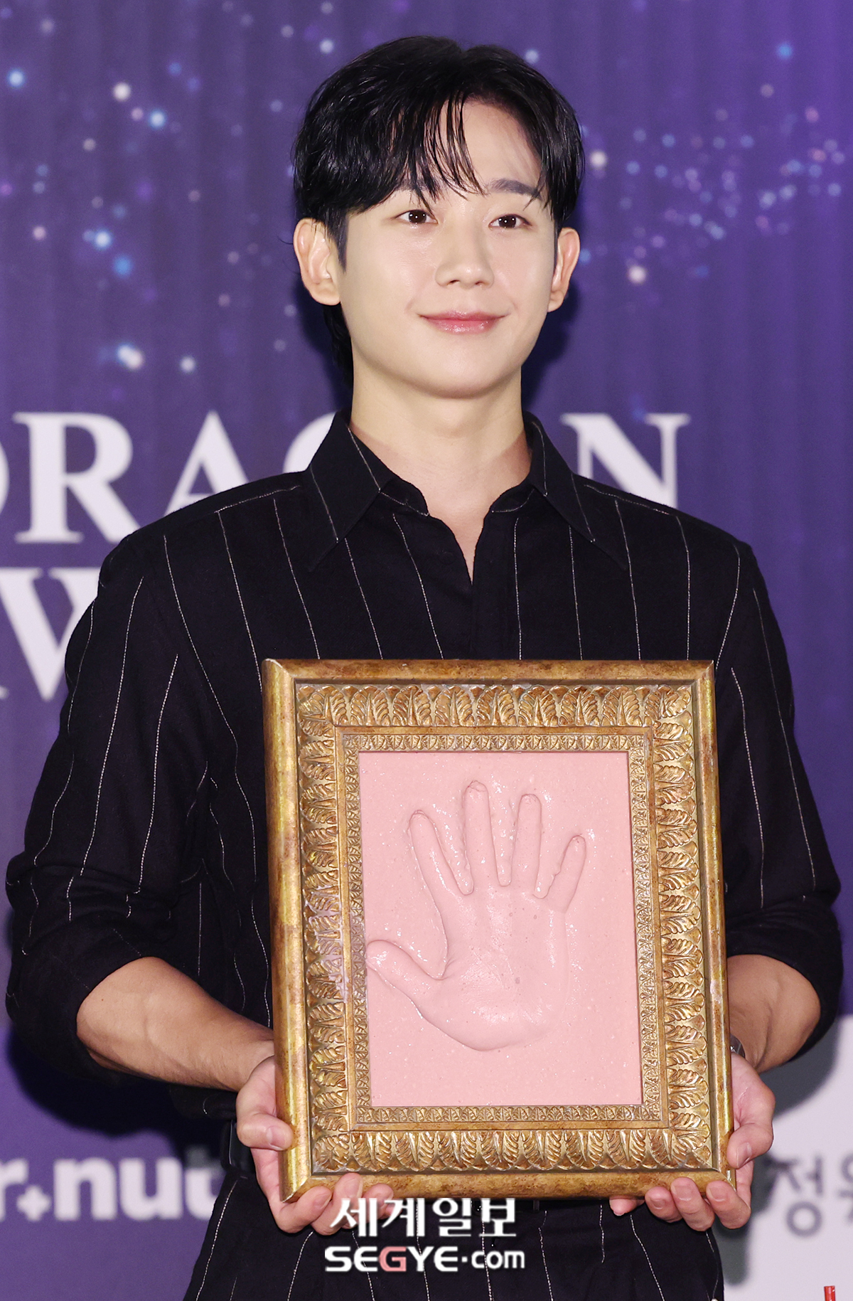 배우 정해인이 29일 서울 여의도 CGV에서 진행된 제46회 청룡영화상 핸드프린팅 행사에 참석해 포즈를 취하고 있다.