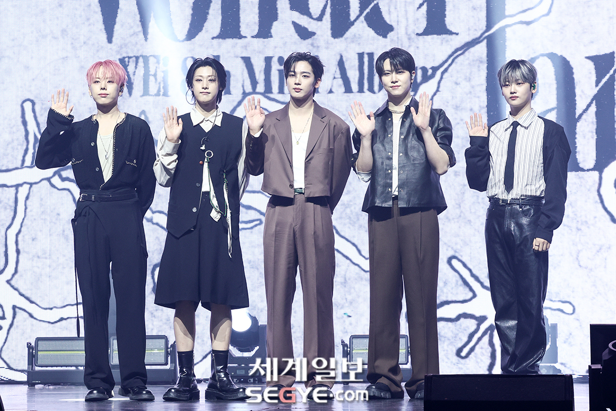 그룹 위아이가가 29일 서울 광진구 예스24라이브홀에서 진행된 미니 8집 ‘원더랜드(Wonderland)’ 발매 기념 쇼케이스에서 포즈를 취하고 있다.