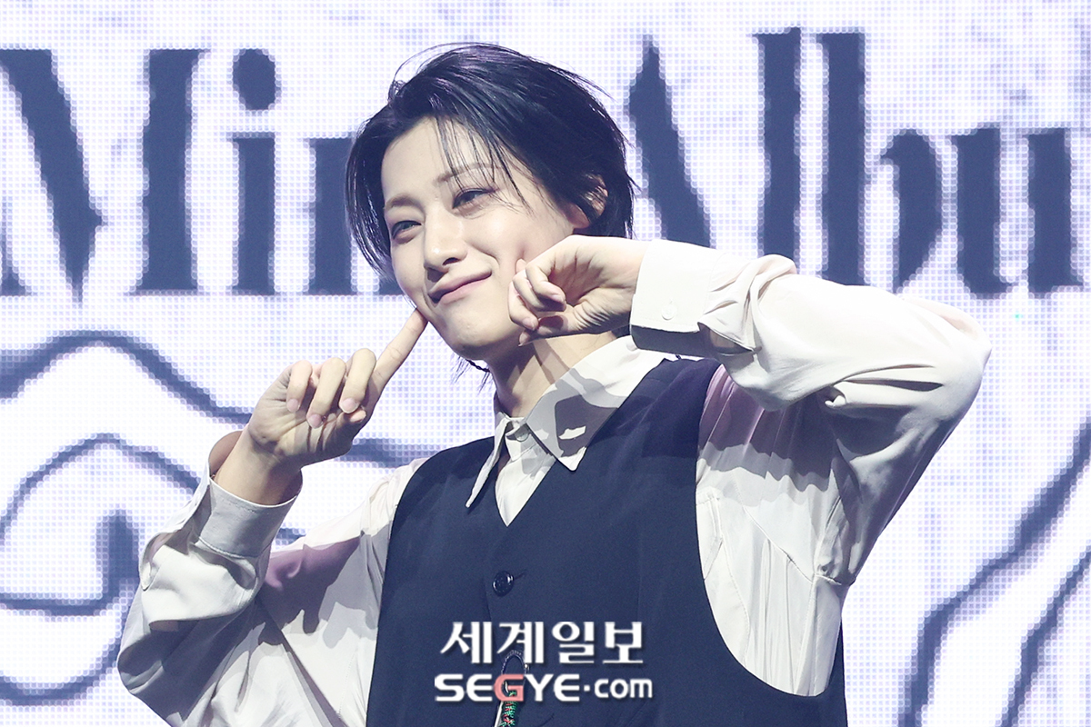 그룹 위아이 유용하가 29일 서울 광진구 예스24라이브홀에서 진행된 미니 8집 ‘원더랜드(Wonderland)’ 발매 기념 쇼케이스에서 포즈를 취하고 있다.