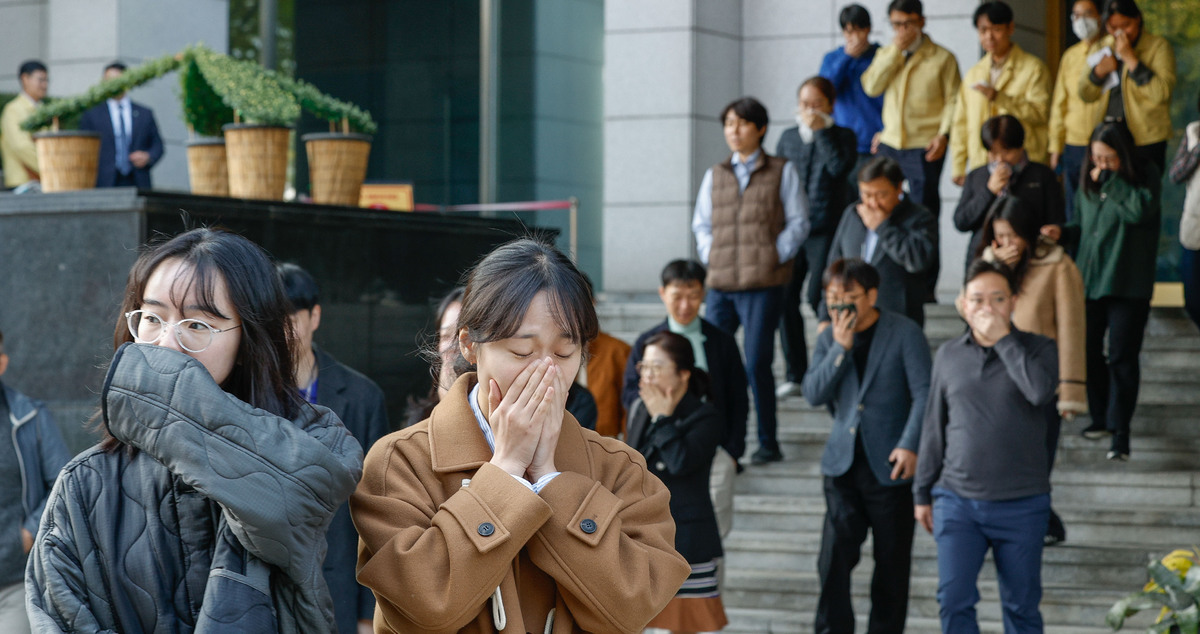 29일 서울 종로구 정부서울청사에서 화재 대비 민방위 대피훈련이 시행다. 이번 훈련은 가을·겨울철 화재 대비 재난 예방과 대응을 위한 화재 대피 행동 요령숙지 및 생활형 안전교육을 위해 실시됐다.