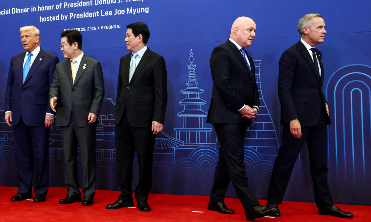 29일 CBC 방송 등 캐나다 언론에 따르면 카니와 트럼프는 이날 저녁 이재명 대통령이 경주 힐튼 호텔에서 주최한 만찬에 나란히 참석했다. 에이펙 정상회의 참석차 한국을 방문한 외국 정상들 가운데 카니와 트럼프를 포함해 7명이 함께했다. 만찬 테이블 좌석 배치를 보면 트럼프는 이 대통령 바로 오른쪽에 앉았고, 트럼프와 정확히 마주보는 맞은편 자리에 카니가 착석했다.