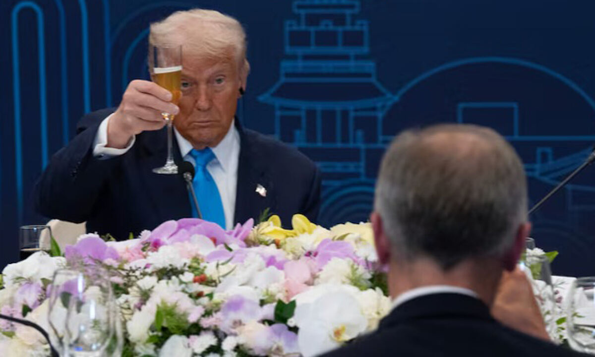 캐나다에 대한 불만의 표시로 마크 카니 캐나다 총리를 무슨 ‘투명인간’처럼 취급하는 도널드 트럼프 미국 대통령의 언행이 말레이시아에 이어 한국에서도 지속되고 있다. 경주 아시아태평양경제협력체(APEC·에이펙) 정상회의 참가자들을 위한 만찬장에서 조우한 두 사람은 건배 때 잠깐 눈이 마주치긴 했으나, 유의미한 대화는 없었던 것으로 보인다.