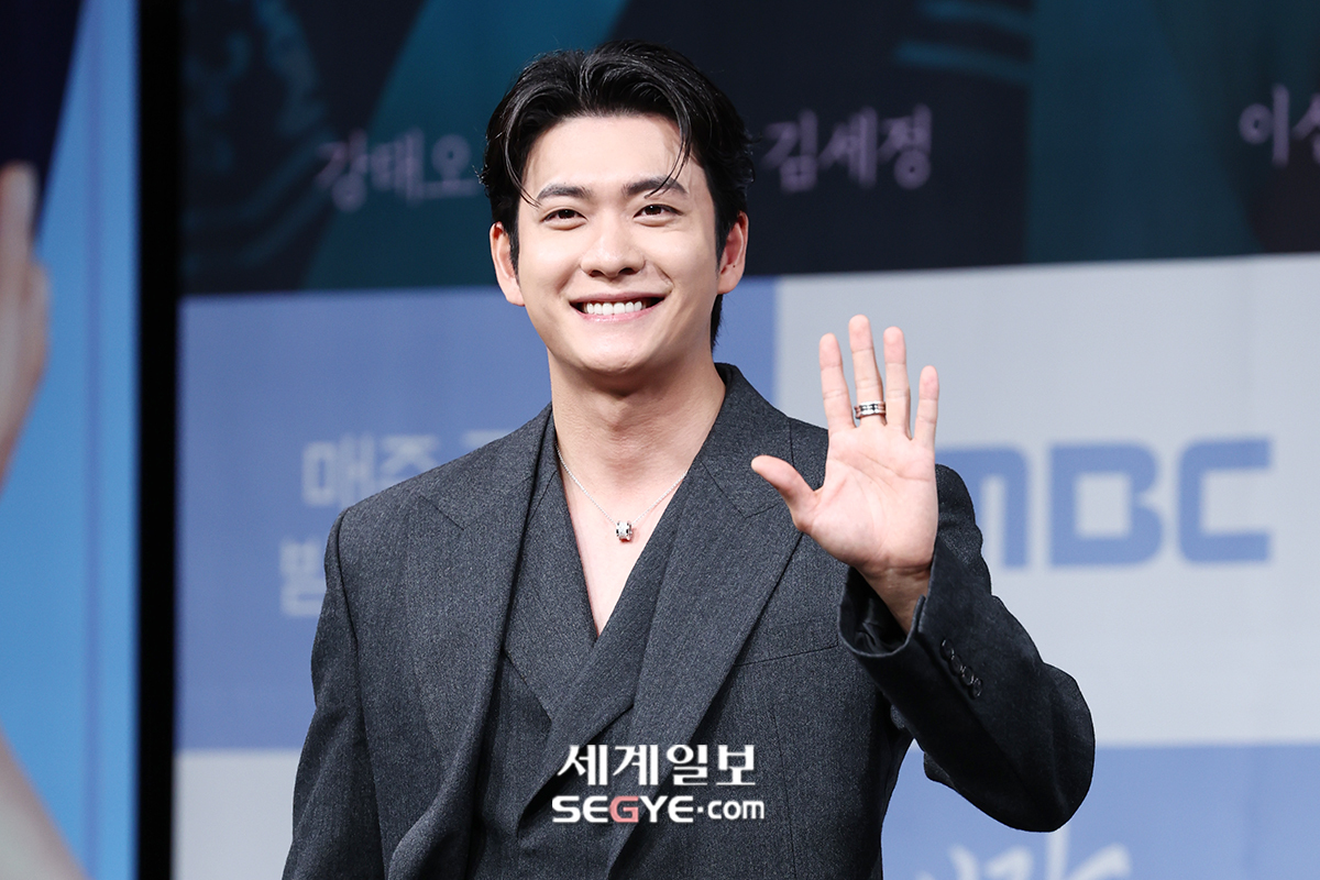 배우 강태오가 30일 서울 마포구 상암동 MBC 신사옥에서 열린 MBC 새 금토드라마 ’이강에는 달이 흐른다’의 제작발표회에 참석해 포즈를 취하고 있다.