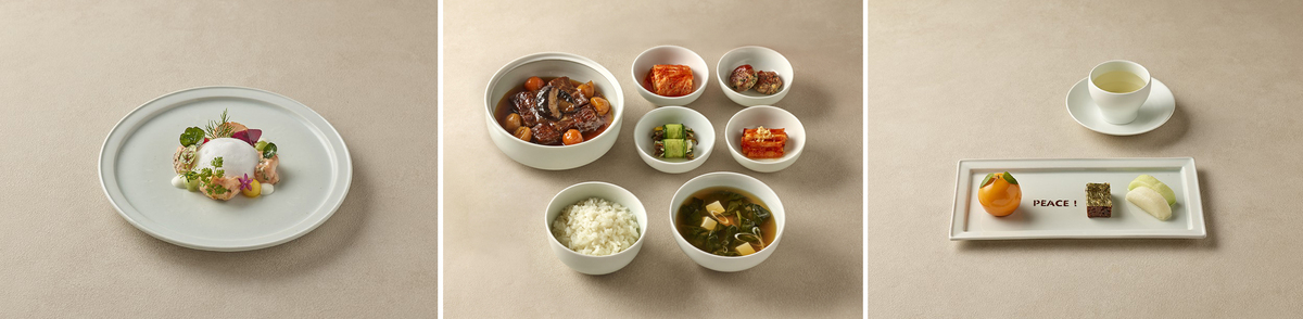 당시 만찬 메뉴로는 경주 천년한우 등심과 경주 남산 송이버섯, 구룡포 광어, 영월 오골계와 트뤼프(트러플) 만두, 지리산에서 양식한 캐비어를 곁들인 최고급 양식 코스요리가 제공됐다.