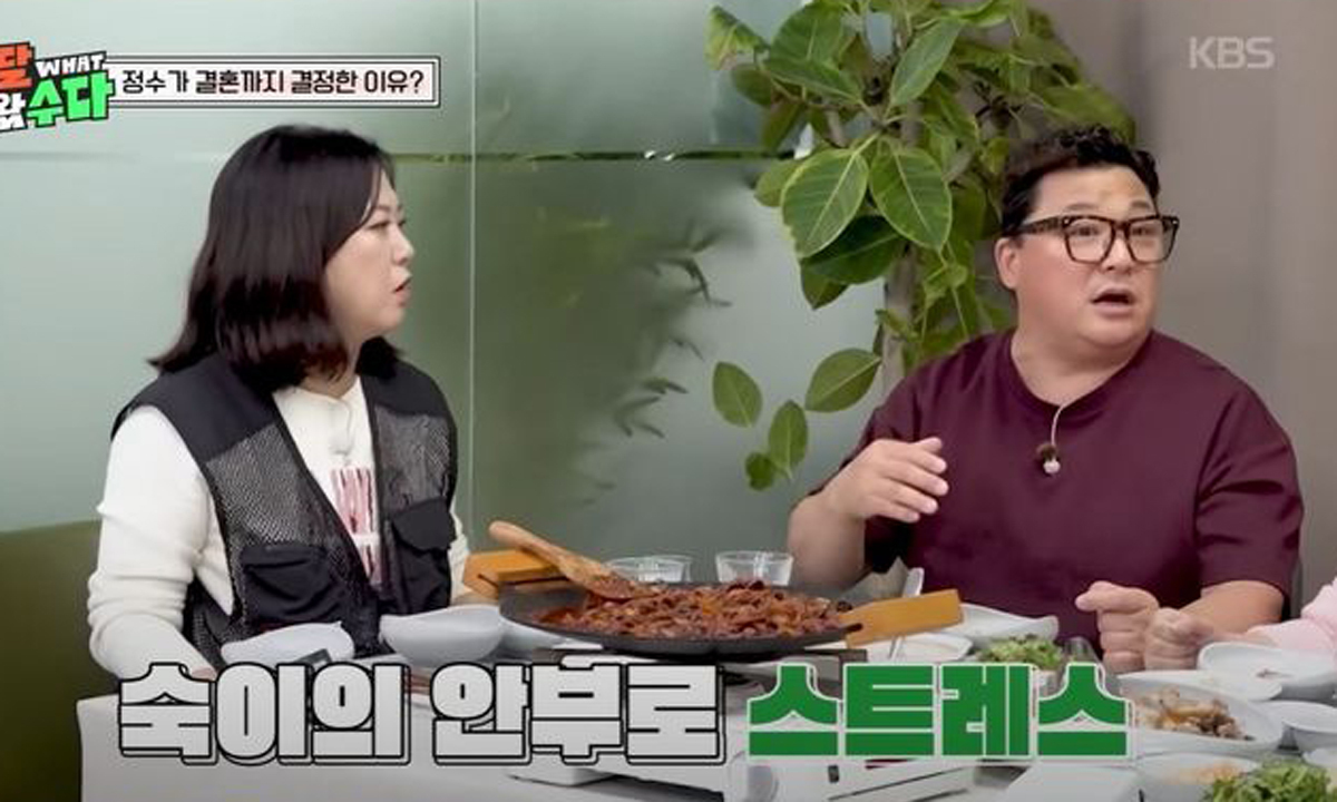 이어 이영자가 "정수가 아내랑 만나는 시기랑 김숙이랑 예능 프로그램 찍은 시기가 겹친다"고 하자 김숙은 "양다리였냐"고 말했다.