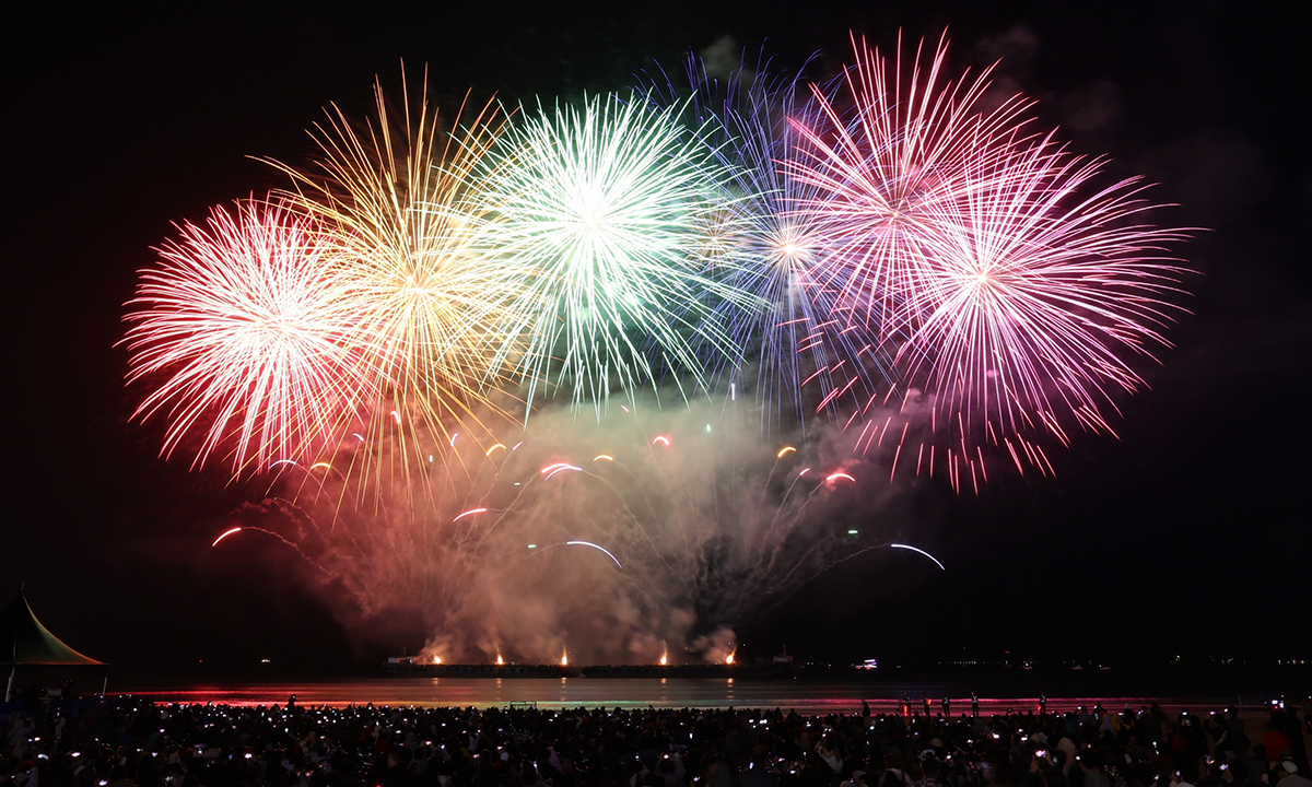 마지막으로 열린 하이라이트 불꽃쇼 ‘우리가 만들어가는 지속가능한 내일’에서는 영일만 바다 위 바지선 2대에서 1만5000여발의 불꽃이 발사됐다.