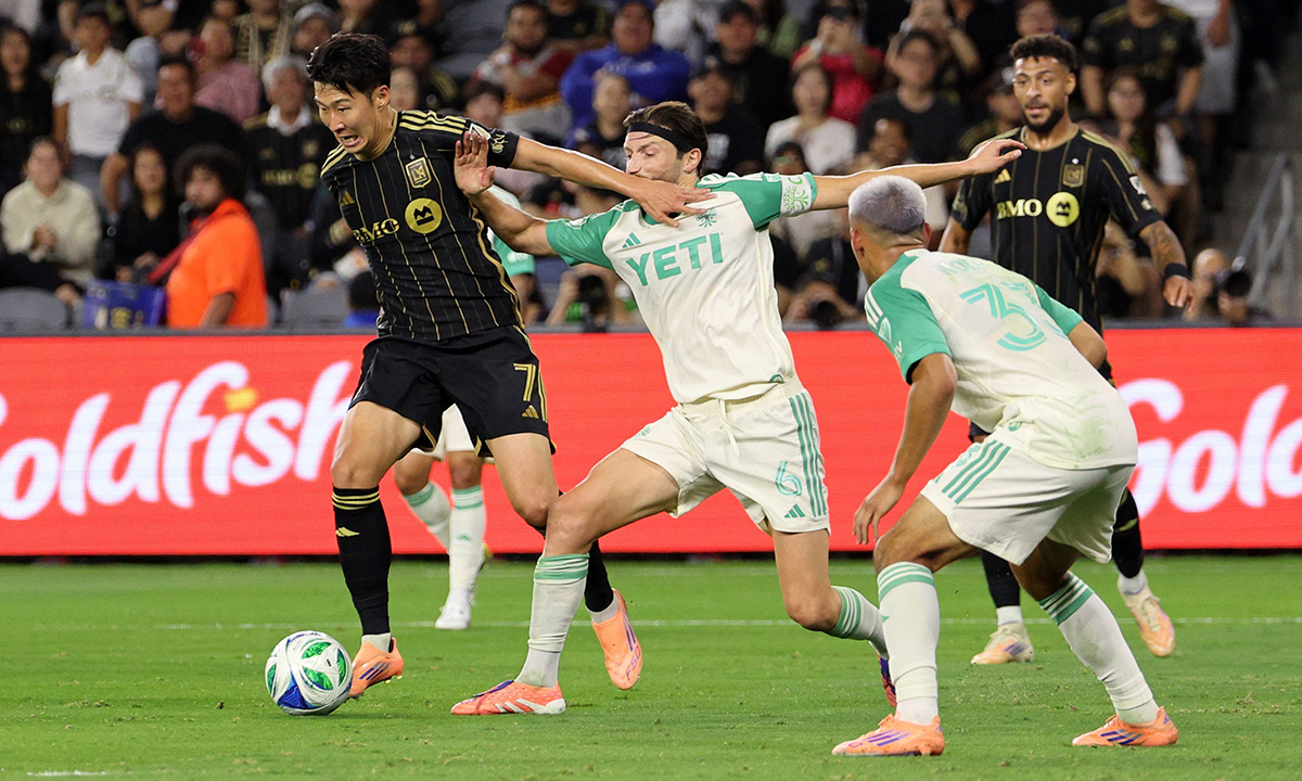 손흥민은 30일 미국 캘리포니아주 LA의 BMO 스타디움에서 열린 오스틴FC와 2025 MLS컵 플레이오프(PO) 서부 콘퍼런스 1라운드(3전2승제) 1차전 홈 경기에 ‘흥부 듀오’ 드니 부앙가와 공격진을 이뤄 선발 출장해 후반 추가 시간까지 뛰고 2-1로 앞선 상황에서 제레미 에보비시로 교체됐다.