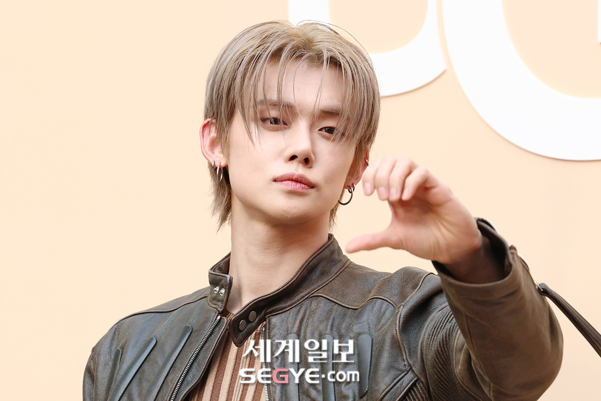 그룹 TXT 연준이 30일 서울 강남구 압구정동에서 진행된 한 의류 브랜드 행사에 참석해 포즈를 취하고 있다.