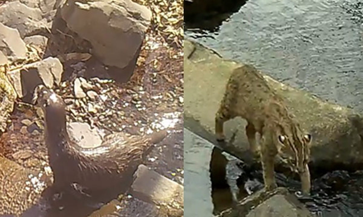 무인카메라에 포착된 수달(위), 무등산에서 포착된 삵의 모습. 국립공원공단 무등산국립공원동부사무소 제공