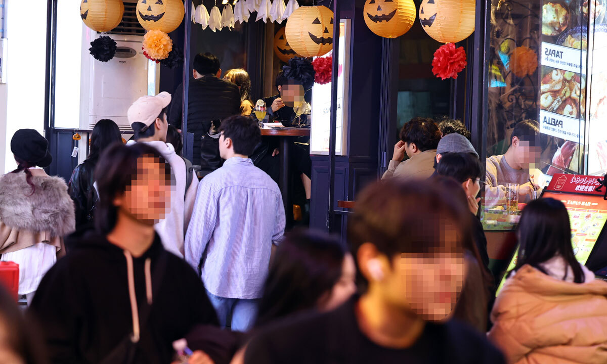 핼러윈데이를 맞아 서울 용산구 이태원 일대에 인파가 몰리면서 서울 지하철 6호선 이태원역 무정차 통과가 이뤄지고 있다.