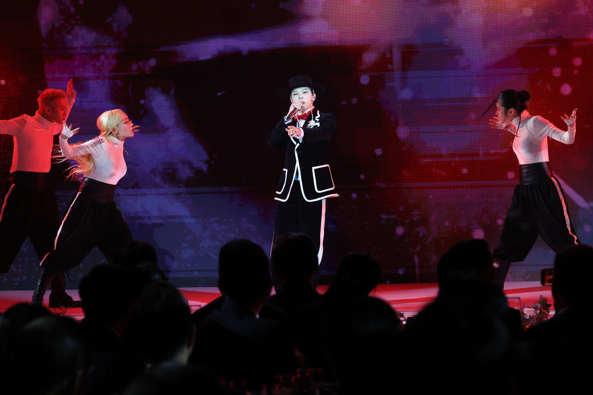 가수 지드래곤이 지난 31일 경북 경주시 라한셀렉트호텔에서 열린 '2025 아시아태평양경제협력체(APEC) 정상회의' 환영 만찬에서 공연을 펼치고 있다. 연합