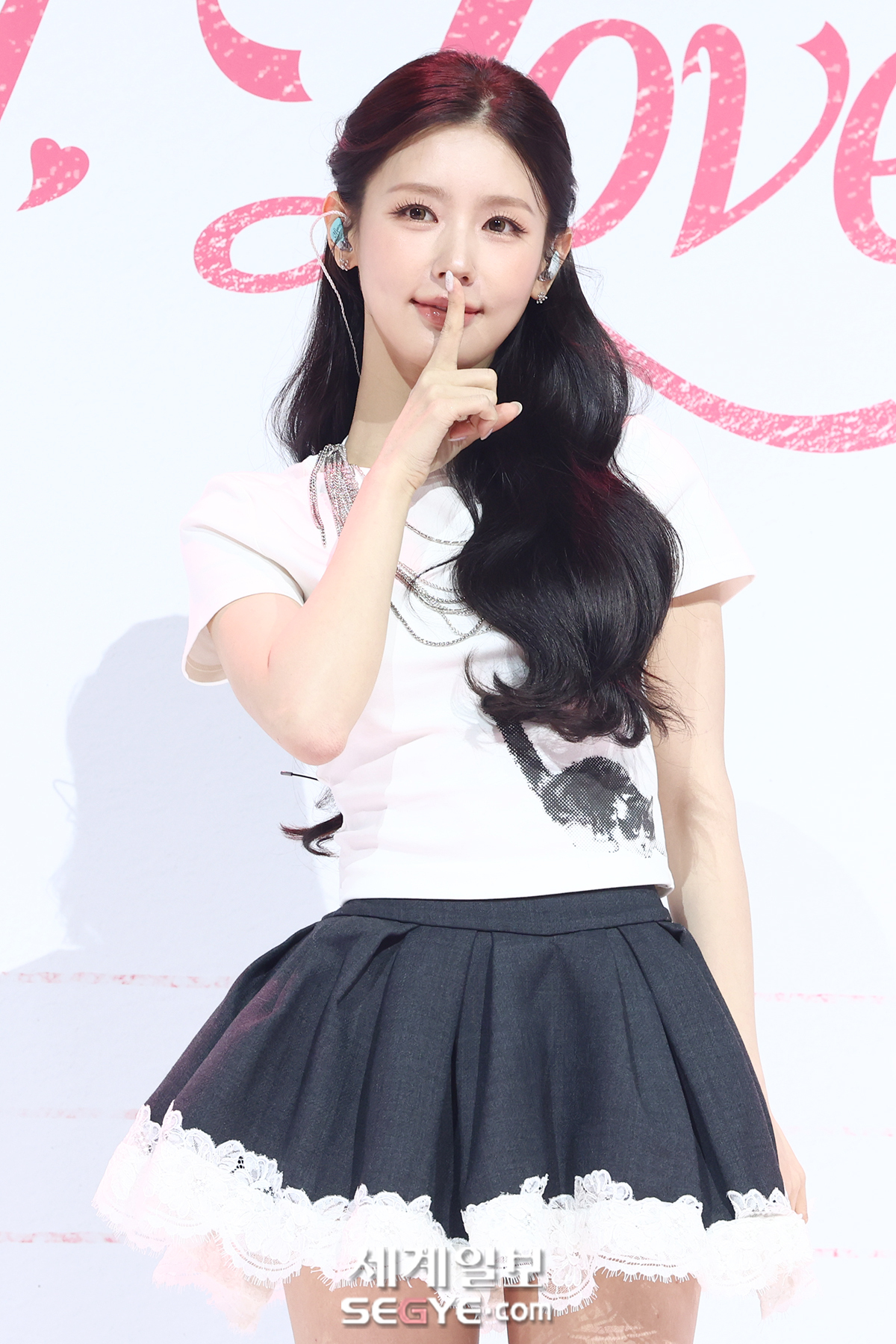 그룹 아이들 미연이 3일 서울 한남동 블루스퀘어에서 열린 솔로 미니 2집 ‘MY, Lover’ 쇼케이스에 참석해 포즈를 취하고 있다.