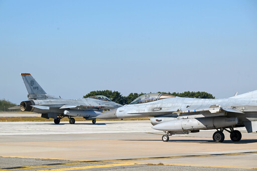 한국 공군 제38전투비행전대 KF-16 전투기(왼쪽)와 미 공군 제8전투비행단 소속 F-16 전투기가 이륙을 위해 활주로에서 이동하고 있다. 한·미 공군은 이날부터 7일까지 대규모 연합공중훈련 ‘25-2차 프리덤 플래그(Freedom Flag)’를 실시한다.