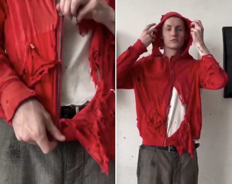 이 재킷은 간신히 후드 모양을 유지하고 있을 뿐, 옷 여기저기가 찢어져 나간 모양이다. 이 옷을 접한 네티즌들은 “버려진 옷을 고가에 판다”, “950달러짜리 걸레 같다” 등의 비판을 쏟아내기도 했다.