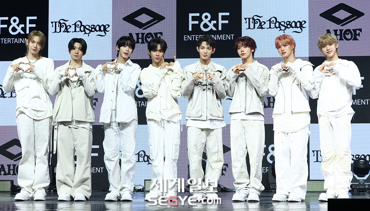 그룹 아홉(AHOF)이 4일 서울 광장동 예스24 라이브홀에서 열린 두 번째 미니앨범 'The Passage(더 패시지)' 쇼케이스에 참석해 포즈를 취하고 있다.