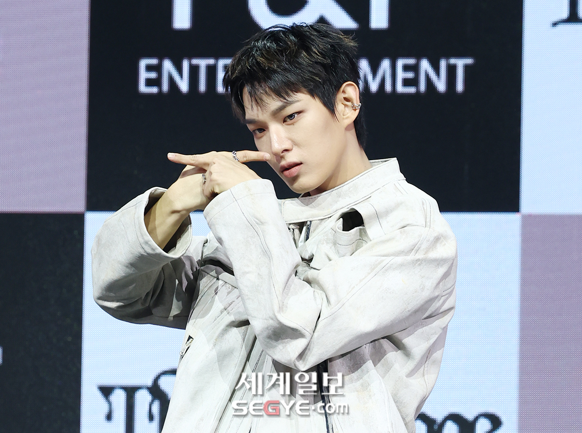 그룹 아홉(AHOF) 스티븐이 4일 서울 광장동 예스24 라이브홀에서 열린 두 번째 미니앨범 'The Passage(더 패시지)' 쇼케이스에 참석해 포즈를 취하고 있다.